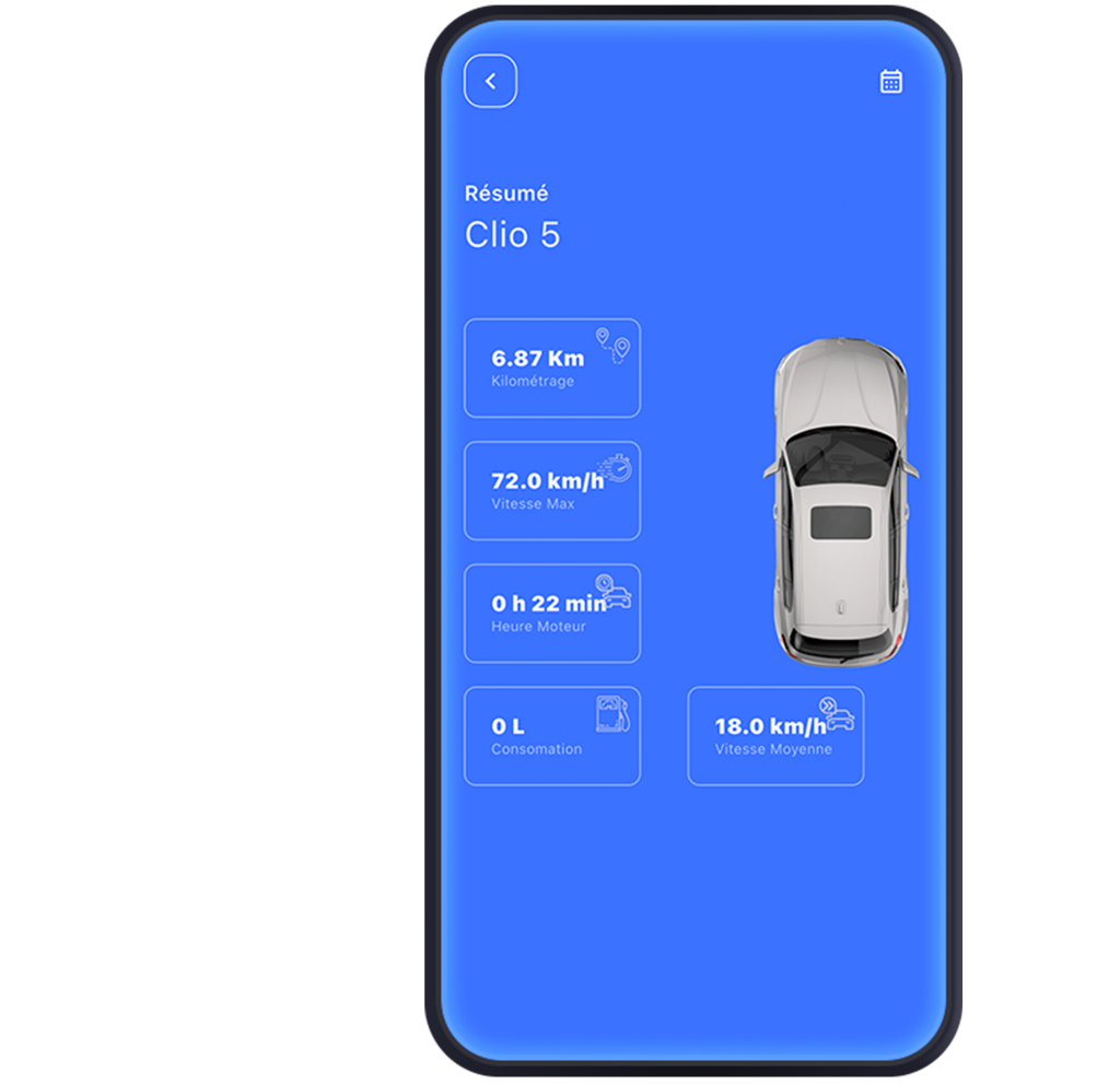 Visualisez la distance parcourue, la vitesse moyenne, le temps moteur et l’activité journalière de chaque véhicule.