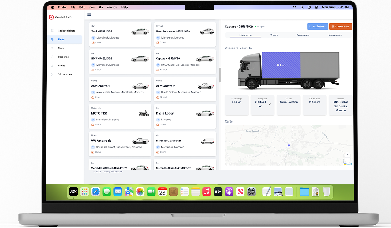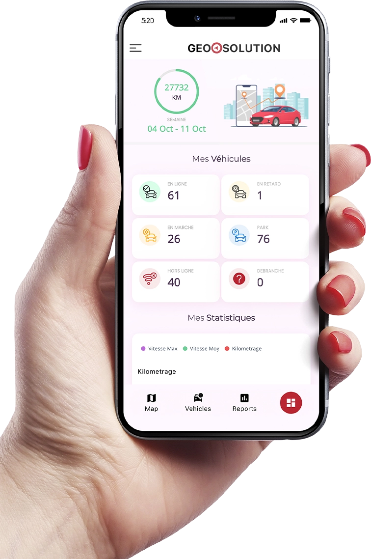 Téléchargez l’application GeoSolution pour gérer votre flotte en temps réel.